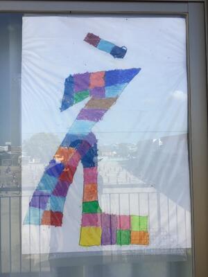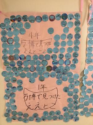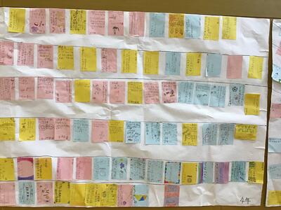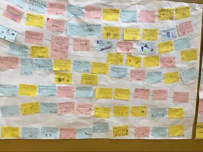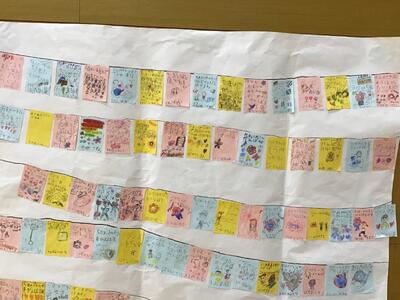 サブアリーナ運動場側掲示 1~6年生まで、子どもたち、みんなで色を塗りました。