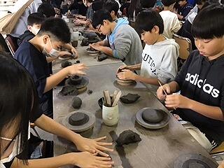 | 出発式 | バス乗車 | 陶芸のお話 | 手びねり体験 |